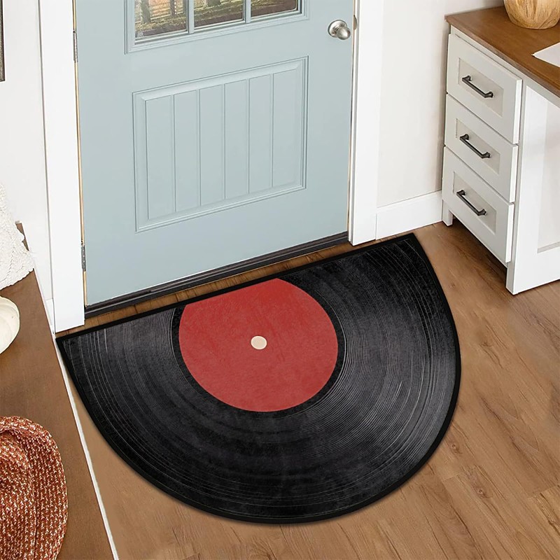Half Round Crystal Velvet Door Mat For Entryway Soft Non-Slip Machine Washable Floor Rug Simple Nordic Style Record Design Stain Resistant Durable Absorbent Bathroom Decorative Carpet