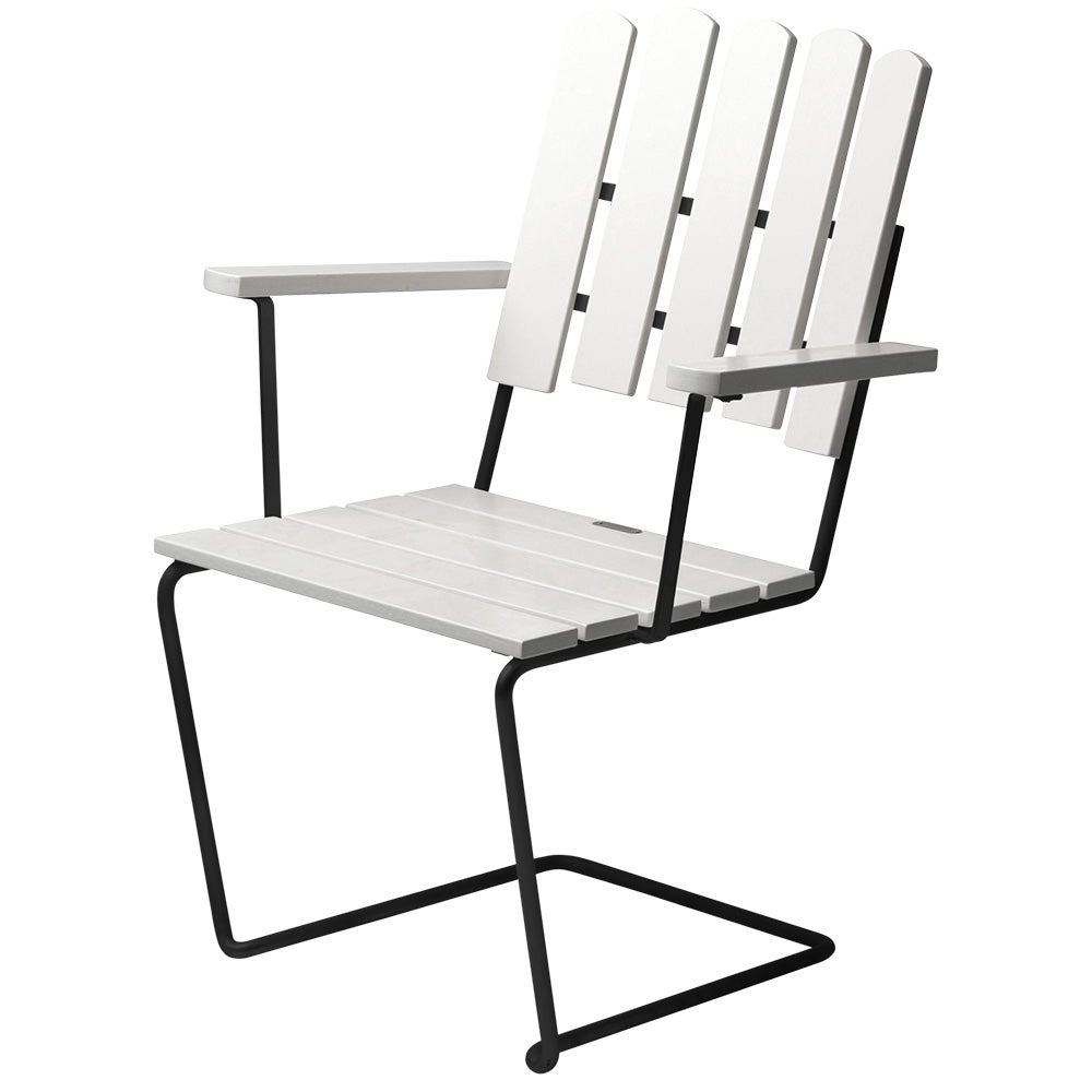 Grythyttan Stålmöbler, A2 nojatuoli Valkoinen lakattu tammi / musta runko