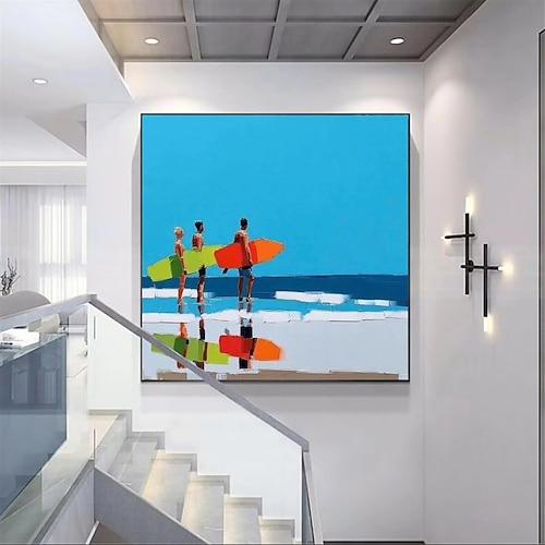 dipinto a olio fatto a mano su tela decorazione artistica da parete moderna astratta mare blu cielo limpido mare tempo libero paesaggio per arredamento casa cornice tesa dipinto appeso/telaio