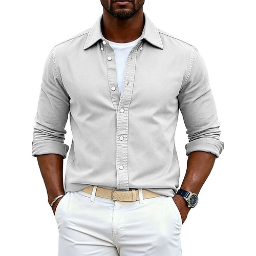 Per uomo Camicia Camicia Estiva Camicia casual Camicia da Spiaggia Camicia con Bottoni Nero Bianco Blu marino Azzurro cielo Kaki Manica Lunga Tinta unica Bavero Casuale Quotidiano Abbigliamento Moda