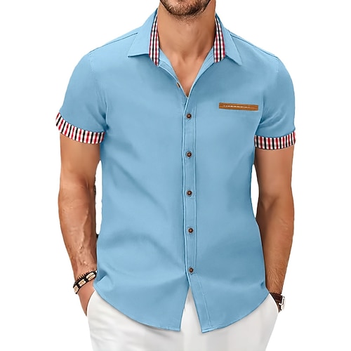Per uomo Camicia Camicia elegante Camicia con Bottoni Semplice Casuale Quotidiano Nero Bianco Blu marino Azzurro cielo Manica Corta Collo ripiegato Estate Primavera Abbigliamento Patchwork