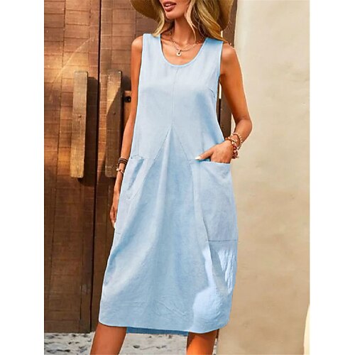 Per donna Blu marino Blu Marrone Estate Primavera Abito Midi Abiti ispirati al lino Vestito Casual Vestito Canotta Essenziale Moderno Quotidiano Weekend Vestibilità comoda Semplice Girocollo