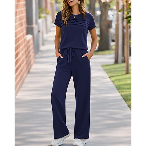 Damen Pullover-Trainingsanzug-Sets 2-teiliger Trainingsanzug Lounge-Outfits Kordelzug mit Tasche Einfarbig Sportbekleidungsset Sommer Frühling Marineblau Schwarz Fitnesstraining Leger Joggen