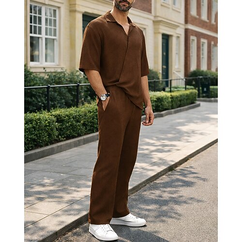 Herren Trainingsanzug Jogginganzug Trainingsanzüge Kordelzug 2 teilig Einfarbig Laufshirt mit Laufhose Sportbekleidungsset Sommer Frühling Schwarz Braun Fitnesstraining Leger Joggen