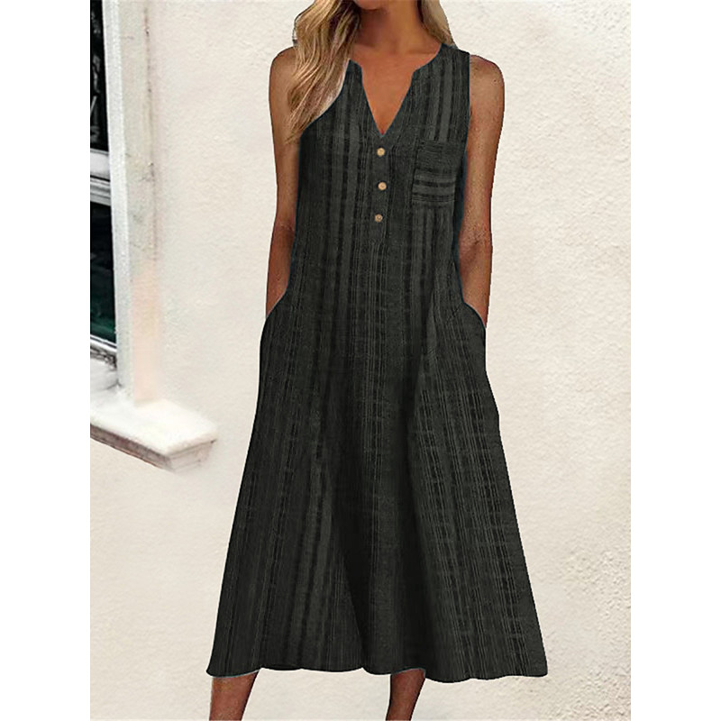 Women's Midi Dress Cotton Linen Dresses Tank Dress Summer Dress Print Dress Active Fashion Outdoor Daily Weekend Loose Fit Plaid Sleeveless V Neck Black Pink Blue Purple Summer Spring
