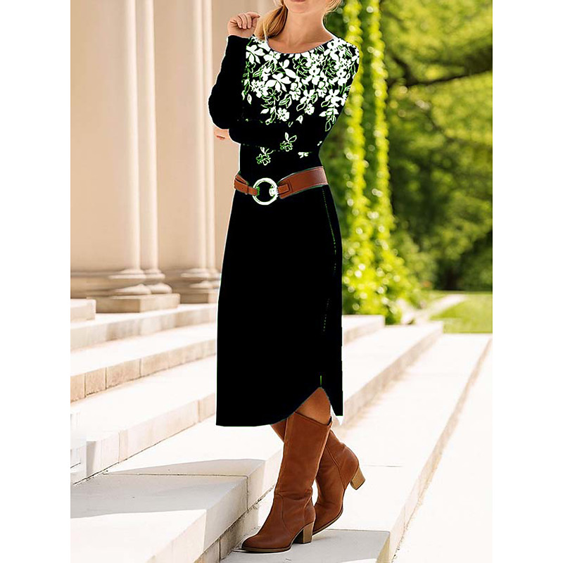 Women's Midi Dress Sheath Dress Shift Dress Casual Daily Regular Fit Floral Graphic Paisley Long Sleeve Crew Neck Black Purple Green Spring Fall Winter Autumn