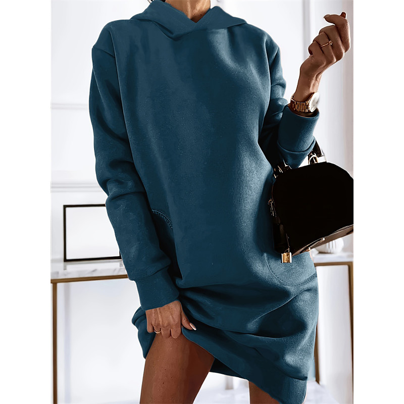 Women's Mini Dress Shift Dress Casual Daily Regular Fit Plain Long Sleeve Hooded Blue Brown Green Spring Fall