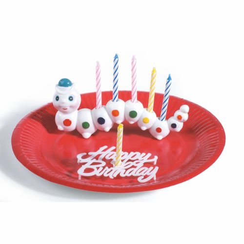 Papstar Halter für Geburtstagskerzen 6,5 cm x 15 cm "Würmli" mit 6 Kerzen, 8 x 1 Stück