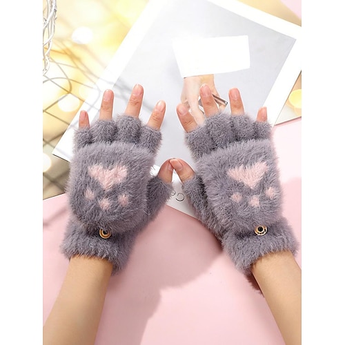 Damen-Fingerhandschuhe aus flauschigem Strick mit Katzenpfotenmuster – weicher Plüschstoff, in verschiedenen Farben erhältlich, perfekt für Winter und Freizeit.