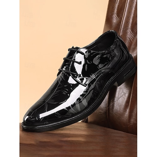 scarpe stringate da uomo in vernice nera e rossa con design astratto - scarpe formali alla moda per serate, feste e matrimoni