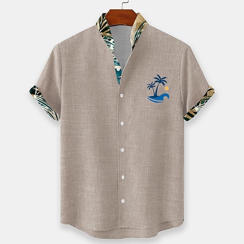 Per uomo camicia di lino Camicia da spiaggia Camicia hawaiana Albero di cocco Esterno Da mare Blu Marrone Verde Manica corta Colletto alla coreana Estate Primavera Abbigliamento Stampa