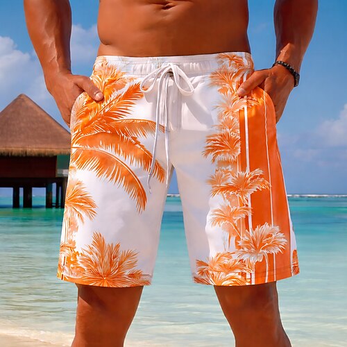 Per uomo Boxer da surf Pantaloncini da mare Boxer da mare A cordoncino con fodera in rete Vita elastica Albero di cocco Comfort Asciugatura rapida Breve Per eventi Spiaggia Fine settimana Di tendenza