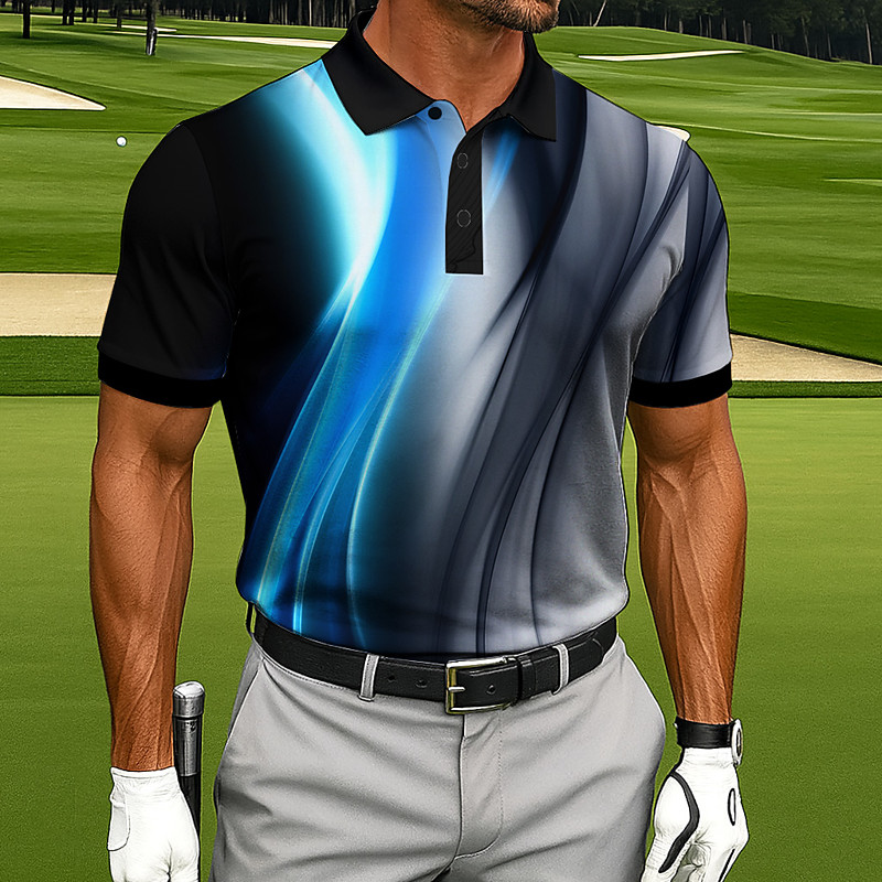 Men's Abstract Geometic Polo Sports Polo Shirts Short Sleeve Polo Shirts Collared Shirts Casual Athleisure Outdoor clothing Daily Wear Buttons Summer Blue Red Green