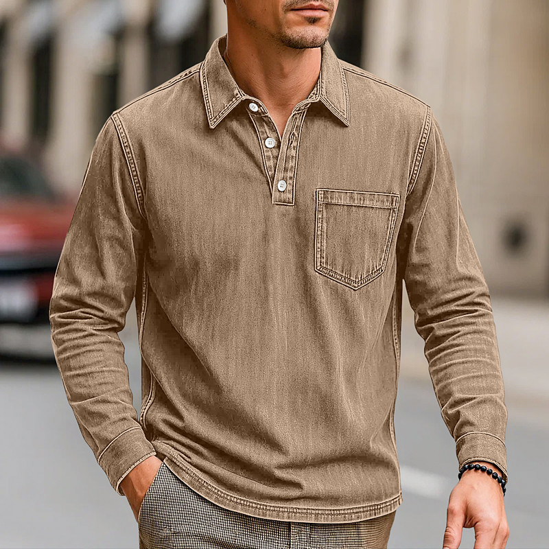 Men's Polo Shirts Golf Polos Shirts Street Business Classic Long Sleeve Vintage Basic Solid Color Plain Pocket Fall Winter Cross-Seasons Regular Fit Pink Dark Blue Green Light Blue Purple Khaki Polo