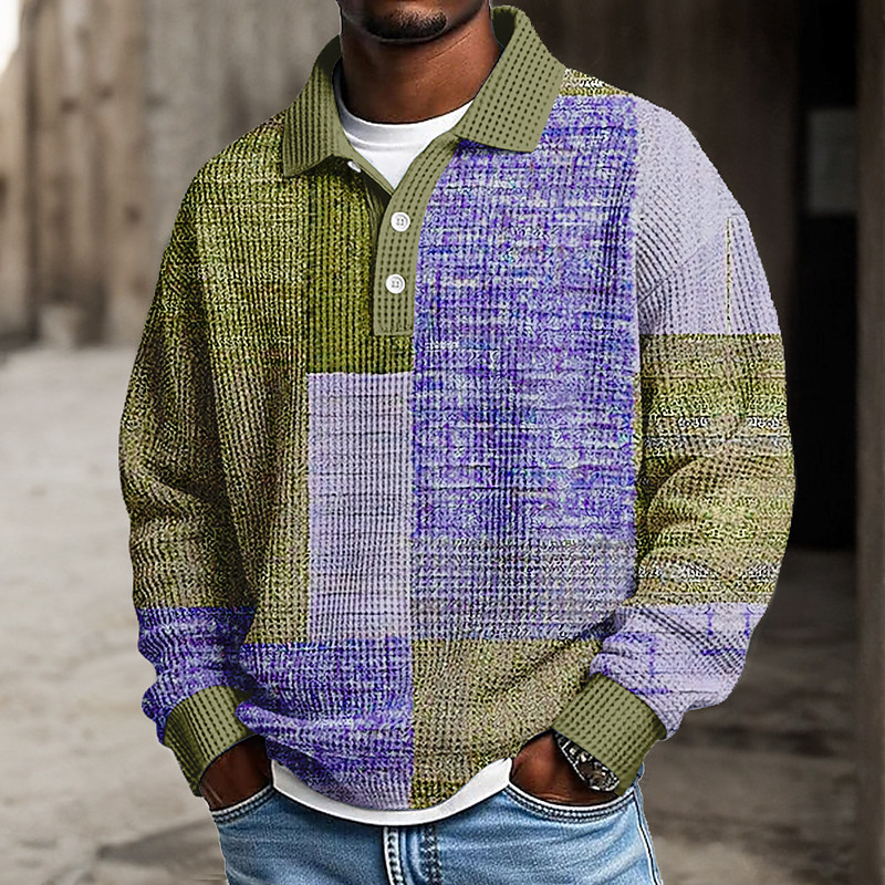 Men's Color Block Polo Textured Long Sleeve Polo Shirts Lapel Sportswear Casual School Athleisure Daily Wear 3D Print Spring Fall Winter Blue Pink Purple