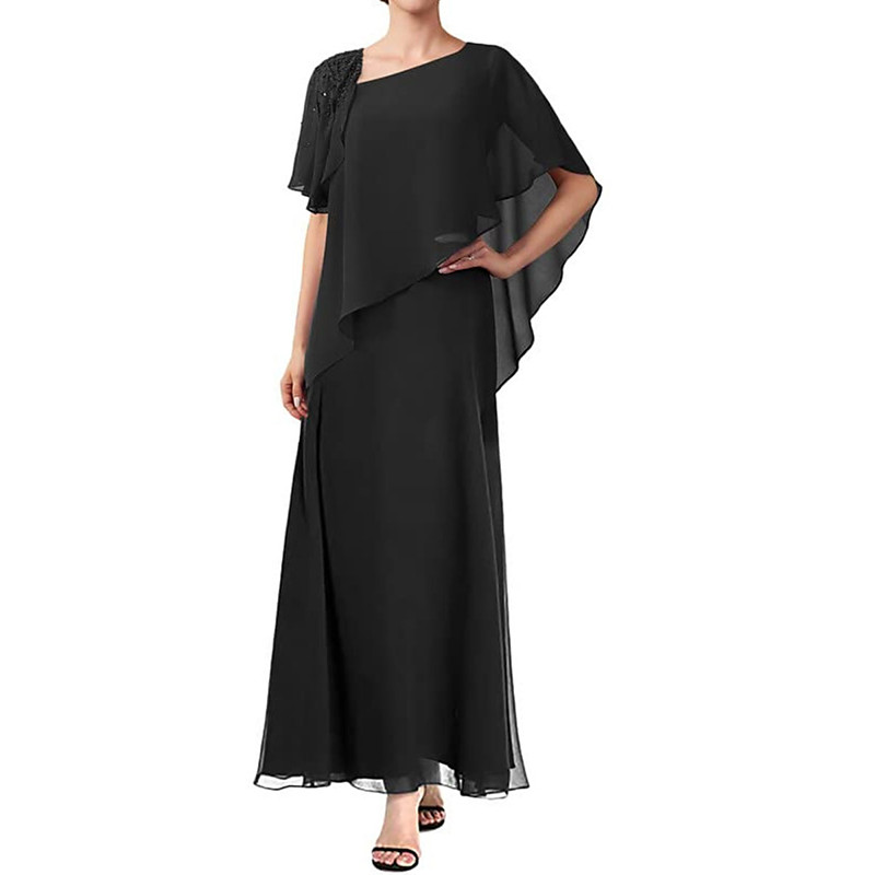 A-Line Ankle Length Party Dress Cocktail Dress Wedding Guest Dress Mother of the Bride Dress Short Sleeve Square Neck Elegant Simple Formal Wedding Guest Formal Evening Chiffon with Solid Color