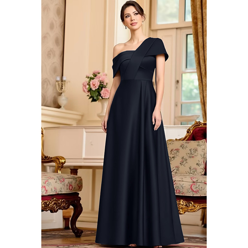 A-Line Floor Length Ankle Length Party Dress Cocktail Dress Wedding Guest Dress Mother of the Bride Dress Short Sleeve Off Shoulder Elegant Minimalist Formal Wedding Guest Satin with Solid Color