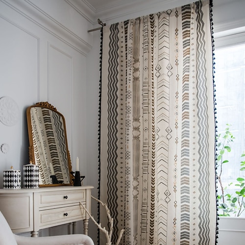 Tende in cotone e lino boho con frange tende geometriche semi oscuranti stampate tende bohemian per finestre della sala da pranzo 1 pannello