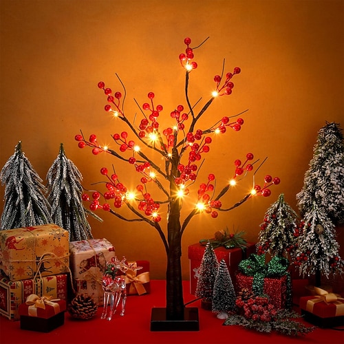 Simulazione di frutta rossa albero decorativo luce 53 cm/20,87 pollici 24 LED festa di primavera capodanno interno camera da letto soggiorno sala da pranzo decorazione festiva oggetti di scena