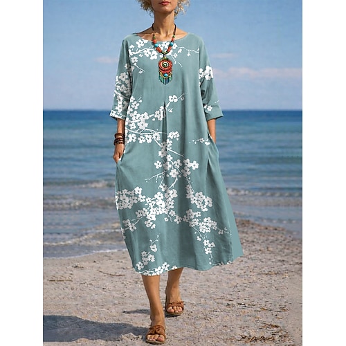 Per donna Abito maxi Abito a trapezio Casual Quotidiano Matrimonio Data Vestibilità comoda Floreale Grafico Manica 3/4 Girocollo Blu Verde chiaro Viola Verde Estate Primavera