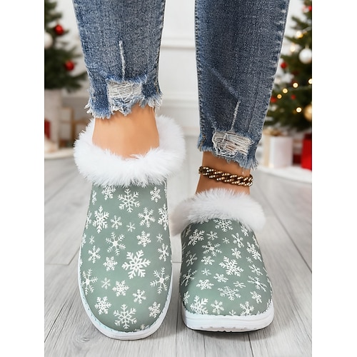 pantofole da donna con stampa a fiocco di neve e slip-on per le feste - scarpe slip-on rosse festive con pelliccia sintetica bianca per il comfort invernale, perfette per la mattina di Natale e per l'abbigliamento casual