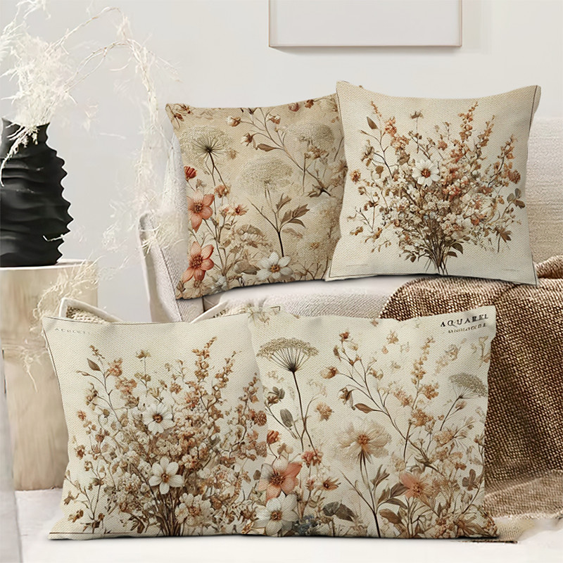 Vintage Pastoral Decorative Toss Pillows Cover 4PC Soft Square Couch Cushion Case Pillowcase for Bedroom Livingroom Sofa Chair