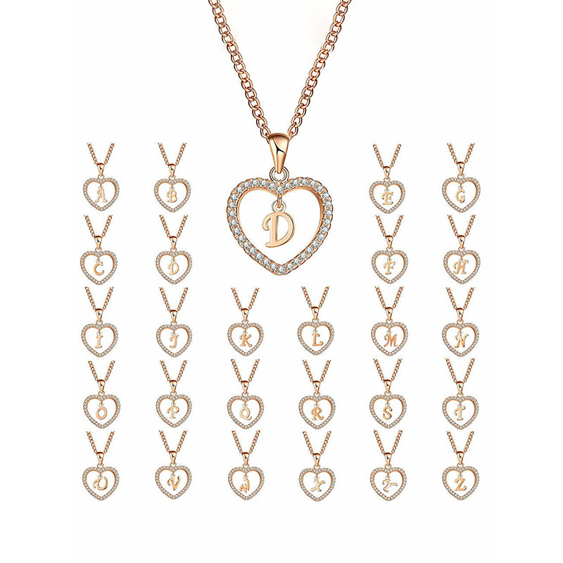 Women's Heart-Shaped Pendant Necklace – Alloy Material, 26 Alphabet Styles, Rhinestone Accents – Perfect Valentine's Day Gift