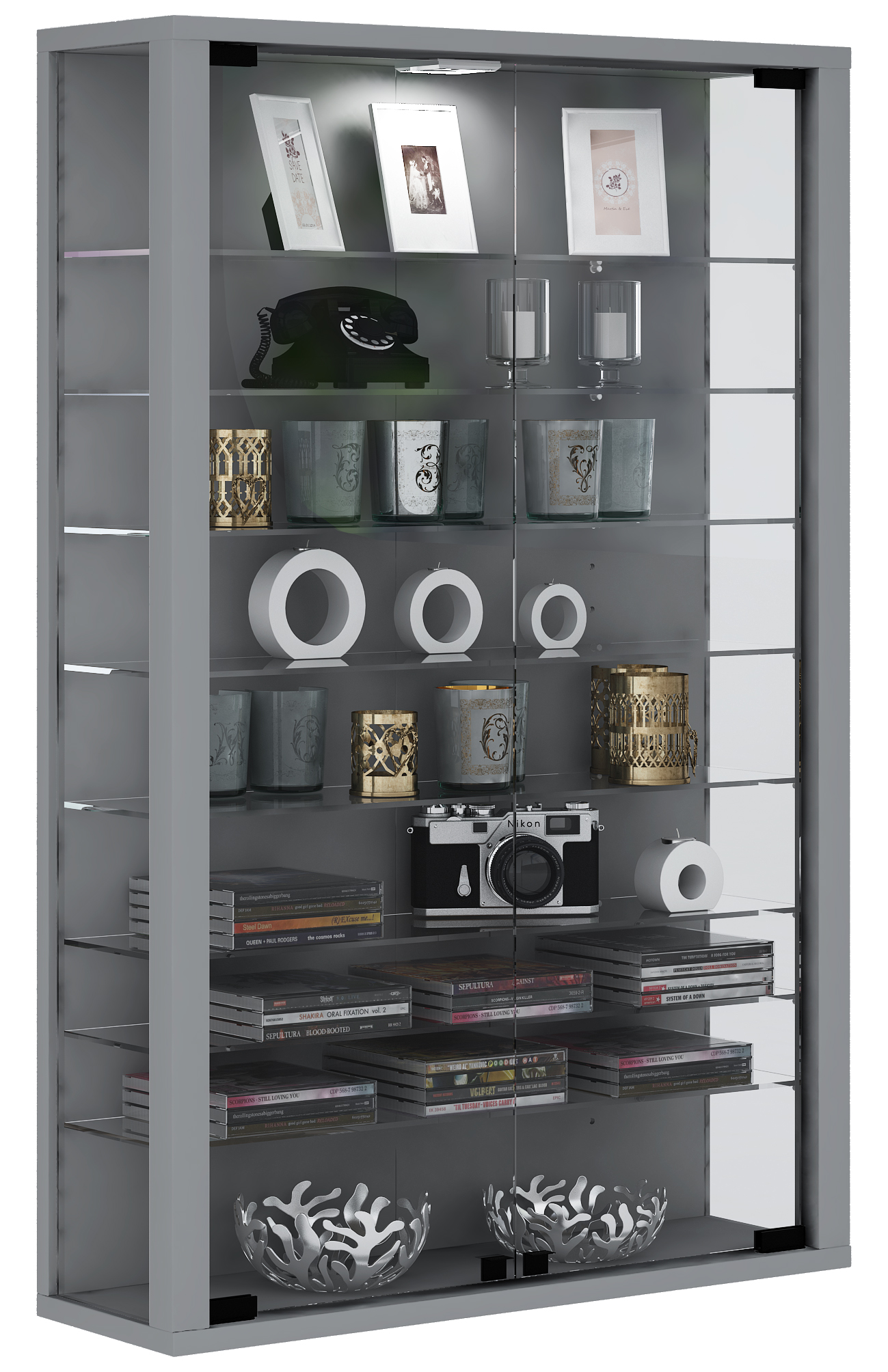 Vitrine HOME AFFAIRE "Vitrine LOLA B/T/H: 62,5/40,5/146,5cm", braun, B:62,5cm H:146,5cm T:40,5cm, FSC-zertifizierter Holzwerkstoff, Furnier, Massivholz, Schränke, Vitrine, Eiche teilmassiv, Türen mit dampfer braun Eiche, B/H/T: 62,5cm x 146,5cm x 40,5cm,