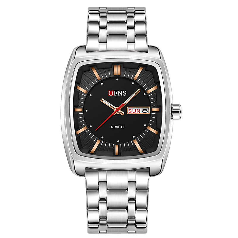 OFNS Brand Men Quartz Watch Sports Fashion Business Wristwatch Luminous Calendar Date Week Waterproof Steel Silicone Gel Watch