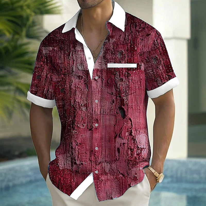 Men's Distressed Print Denim-like Shirt Summer Shirt Button Up Shirt Short Sleeve Fashion Casual Outdoor Vacation Dailywear Summer Spring Turndown 3D Print Collared Shirts Front One Pocket Red Blue