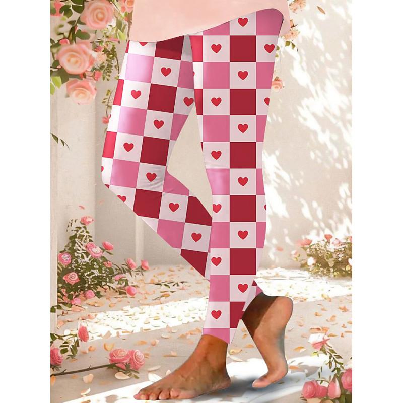 Women's Leggings Vacation Casual Full Length High WaistPantsValentine's Day Heart Graphic 3D Print Comfort Quick Dry Breathability Stretchy Daily Home Outdoor Pink-Black Pinky Black Red Summer Spring