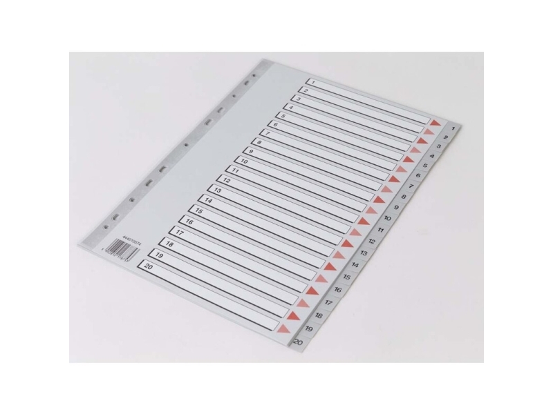 Plastregister Q-Line A4 1-20 grå m/kartonforblad - (10 stk.)