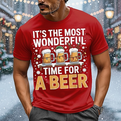 Maglietta natalizia con birra, è il momento più bello per bere una birra, maglietta divertente per le feste da uomo, maglietta grafica con boccale di birra e cappello di Babbo Natale, abbigliamento