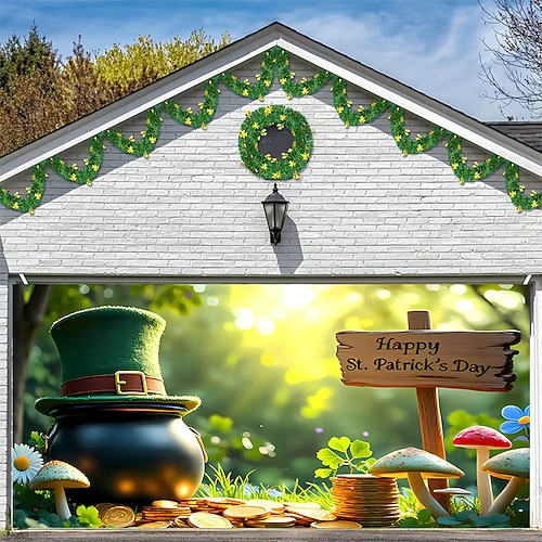 Festa di San Patrizio arazzo Copertura per porta del garage Grande appeso Elfo Cappello verde Carino 3D Da serata All'aperto Vacanze Sfondi di ripresa Yarda Arredamento per la casa