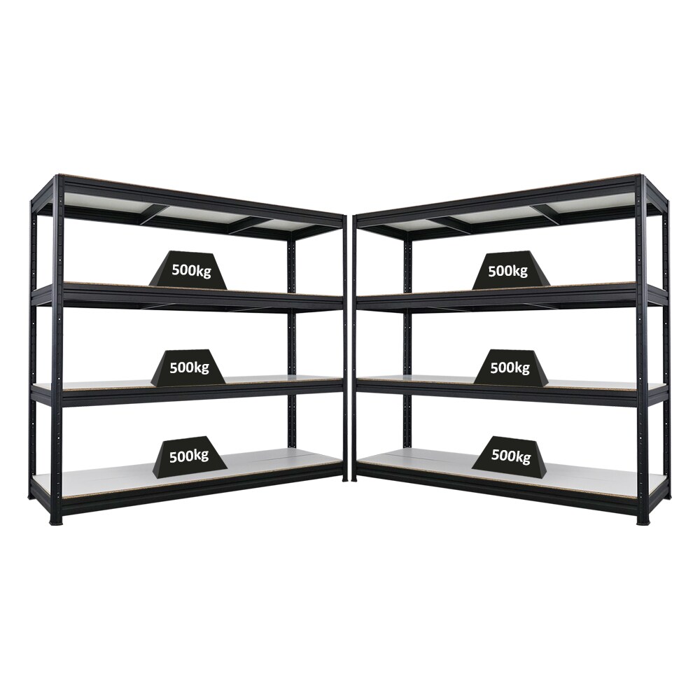 Proregal Mega Deal | 2x Schwerlastregal DINO | HxBxT 180x200x60cm | 4 Melamin-Ebenen 16mm | Fachlast 500kg | Schwarz