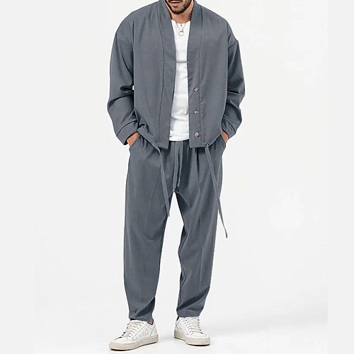 Per uomo 2 pezzi Completo di camicia Set abbinati Maglietta informale Verde Grigio chiaro Grigio Manica lunga Liscio Giornaliero Per uscire Abbigliamento Di tendenza Informale