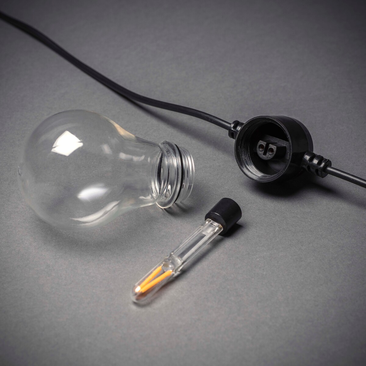 Konstsmide LED Biergartenkette, klar, mit Dimmer, 10 klare Birnen / 20 bernsteinfarbene Dioden, 24 Außentrafo, schwarzes Kabel