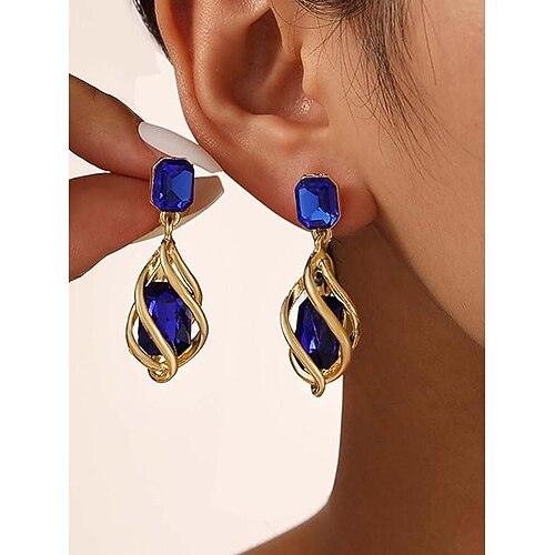 orecchini in lega da donna, vari colori, design elegante con pietre preziose per Natale e occasioni formali
