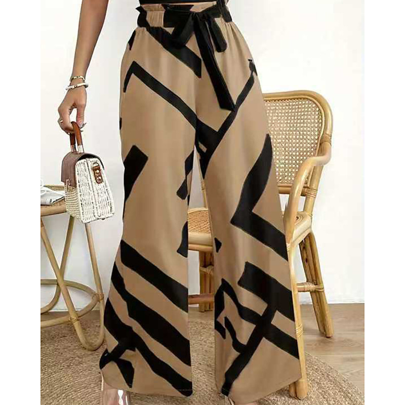 Women's Wide Leg Chinos Fashion Streetwear Full Length High Waist Floral Pocket Elastic Waistband Print Comfy Soft Comfortable Micro-elastic Outdoor Street Khaki Summer Spring Regular Fit