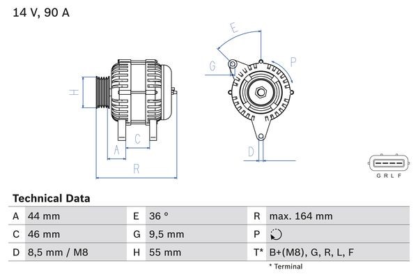 Laturi 14V 90A Bosch 0 986 082 750 - smart fortwo cabrio, fortwo coupé - OE 132 154 00 01, 132-154-00-01, 1800A052