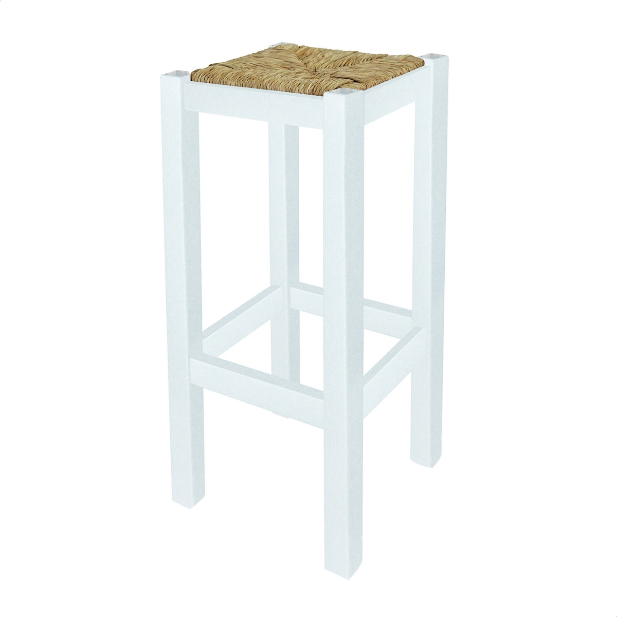 WellHome - Rustikale quadratische hohe Bank aus Holz, Weiß-Finish 32,5x32,5x70 cm