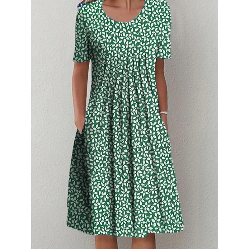 Women's Midi Dress Ombre Floral Pocket Print Crew Neck Daily Date Short Sleeve Summer Spring