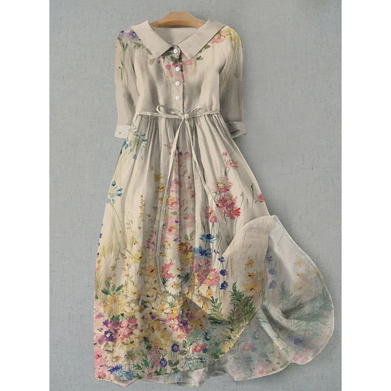 Women's Midi Dress Casual Dress Print Dress Fashion Modern Daily Beach Weekend Regular Fit Floral 3/4 Length Sleeve Crew Neck White Pink Blue Khaki Spring Fall Autumn