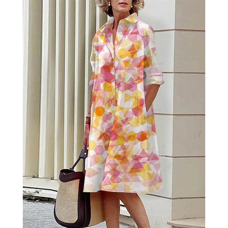 Women's Midi Dress Shirt Dress Casual Dress Fashion Modern Daily Beach Weekend Regular Fit Geometric Long Sleeve Shirt Collar Black Yellow Wine Blue Spring Fall
