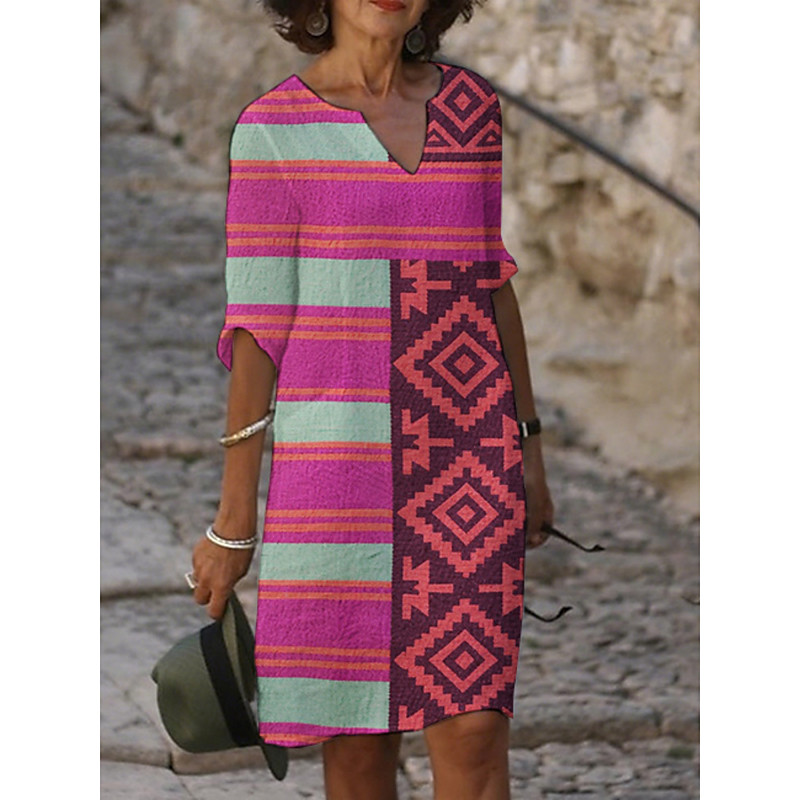 Women's Midi Dress Casual Dress Print Dress Vintage Daily Beach Weekend Regular Fit Geometric 3/4 Length Sleeve Crew Neck Blue Purple Fuchsia Orange Summer Spring Fall Autumn