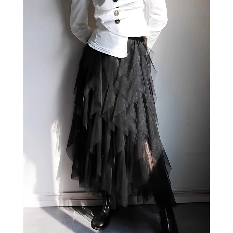 Women's Skirt Gauze Skirts Fashion Casual Midi Mid Rise Skirts Plain Irregular Hem Flowy Micro-elastic Vacation Street Black Pink Spring Polyester