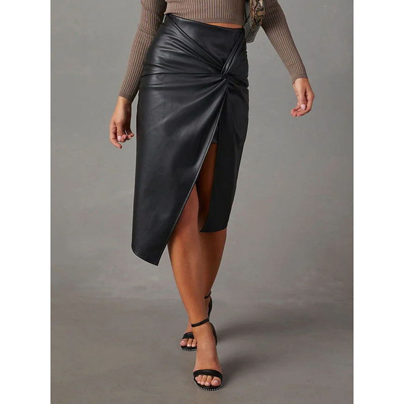 Women's Skirt Bodycon Fashion Midi High Waist Skirts Plain Ruched Inelastic Office / Career Street Black Apricot Spring Faux Leather Polyester