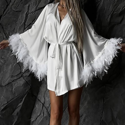 Per donna Abbigliamento da Casa Camicia da Notte Moda Casual Colore Puro Patchwork Elastico in vita Piuma Shorts Casa Vacanza Manica Lunga Scollo a V Blu Nero Bianco Estate Primavera Vestibilit