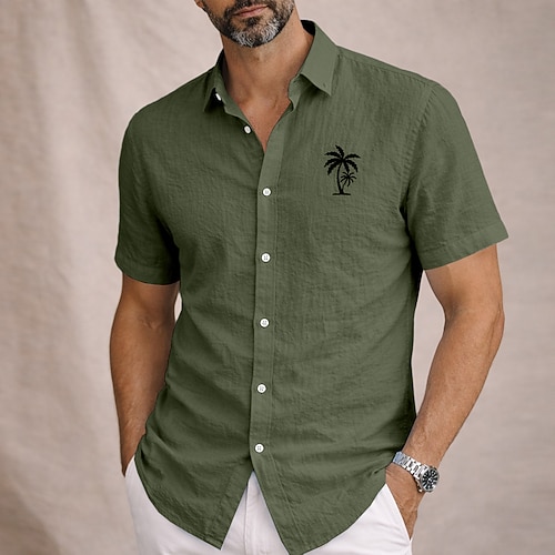 Per uomo Camicia di lino Camicia minimalista Aloha Camicia Estiva Camicia casual Camicia con Bottoni Albero di Cocco Casuale Spiaggia Nero Bianco Rosa Azzurro cielo Manica Corta Bavero Estate