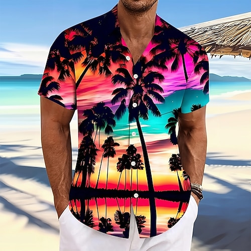 Per uomo Camicia camicia di lino Camicia da spiaggia Camicia hawaiana Albero di cocco Esterno Strada Nero Rosa Verde Grigio Maniche corte Collo ripiegabile Estate Primavera Abbigliamento Stampa